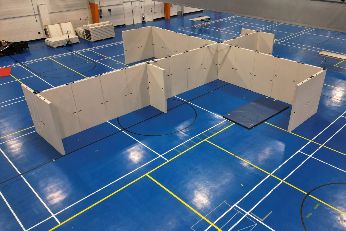This building houses various residential mock-op suites where various simulated scenarios can be staged for hands-on training. A catwalk around the perimeter of the building allows instructors and trainers to observe candidates while participating in the training scenarios.