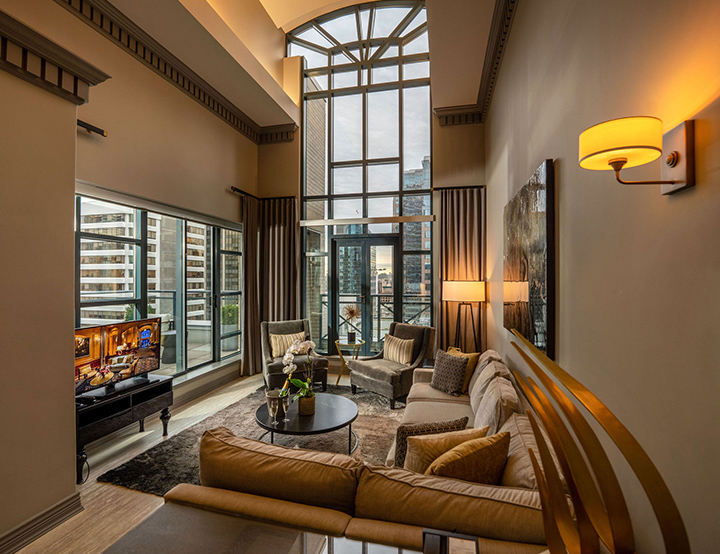 Designed to reflect stylish sophistication and the warmth of old world elegance, the inspiration for the design came from luminary hotels, such as the Savoy in London and Le Crillon in Paris. The Executive Hotel Le Soleil features 113 beautifully appointed suites with separate bedroom and seating areas, offering a level of hospitality that looks after a guest's every need, with the goal to ensure a lasting relationship.